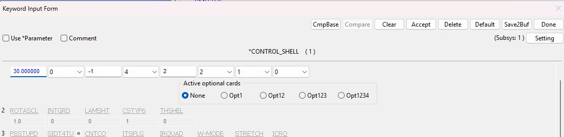 In addition, the following parameters for *CONTROL_SHELL work well for this simulation.