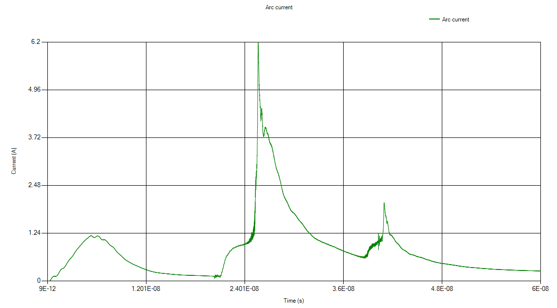 The air conductivity results are shown below. The simulation reveals an arc from the ESD gun to the PCB, a secondary arc between the ESD gun and a nearby board, and an additional arc between that board and the PCB.