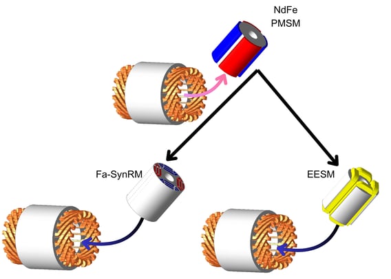 For magnet-free motor types, the options to achieve the same torque density as NdFeB designs are limited. The two main candidates are Electrically Excited Synchronous Motors (EESM) and Induction Motors (IM). In this blog, we will focus on the EESM to highlight the potential growth of this motor type.