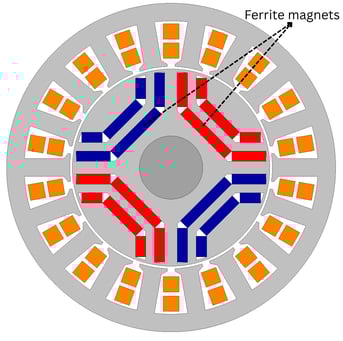 These motors need to be carefully optimized to reach their maximum performance potential. Every aspect of the motor geometry, from magnet size to even the smallest thickness variations in the rotor, must be precisely selected. By fine-tuning these details, both the reluctance torque and the magnet torque can be utilized at their peak, allowing the motor to deliver the highest possible efficiency and output without relying on rare earth materials.
