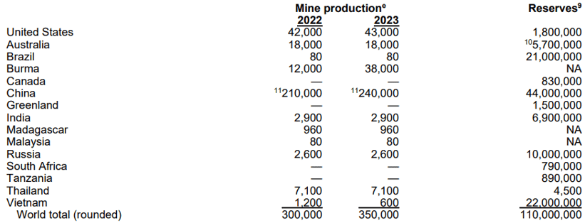source: U.S. Geological Survey, Mineral Commodity Summaries, January 2024