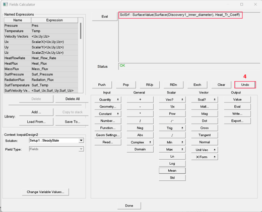 - Now click on Undo. This will delete the mean function and will leave an expression in which the heat transfer coefficient is evaluated on the surface.