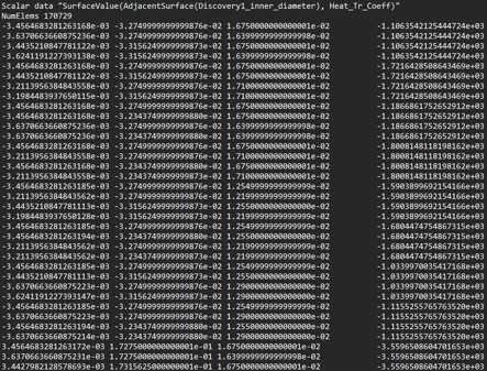 - The file exported looks similar to the image shown below. However, this file is not ready to be read by Ansys Mechanical. We need to create a .csv file based on the data of the .fld file.