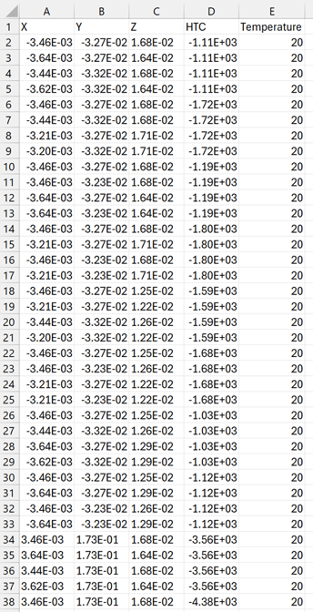 - We have to add an additional temperature column with the ambient temperature listed for each group of coordinates and the heat transfer coefficients.