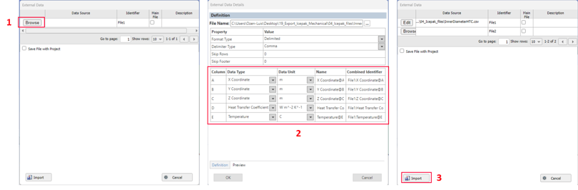 - The new .csv file needs to contain an initial row with the names of the variables. Note: All the variables imported from Icepak are in the default Icepak units.