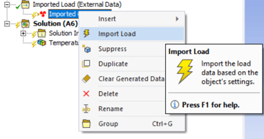 - Finally, we right-click in the Imported Convection task and click on import load.