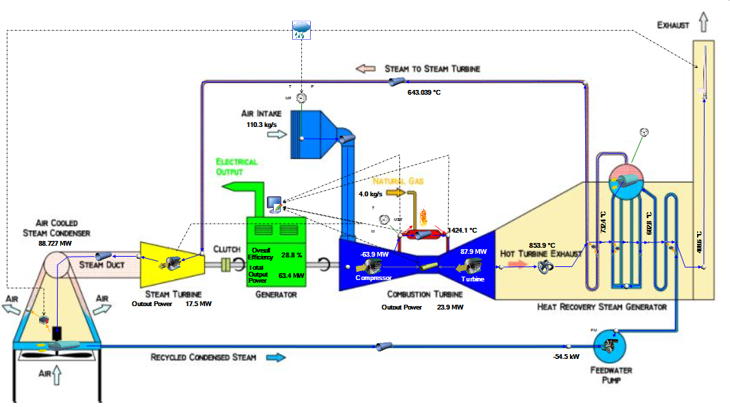 Modeling power generation cycles, especially for combined cycle power plants, involves several challenges that can impact efficiency and accuracy. One significant challenge is the complexity of integrating multiple systems and processes, such as gas turbines, steam turbines, heat recovery steam generators, and various auxiliary components. This complexity requires precise modeling to ensure that each system's interdependencies and dynamic behaviors are accurately represented.
