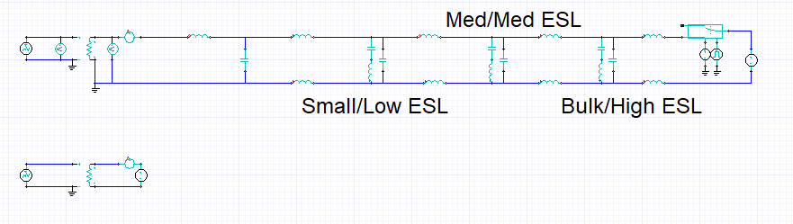 Small / fast / low-ESL capacitors, placed closest to the load — these supply the initial fast current ramp up to RisingTime1.