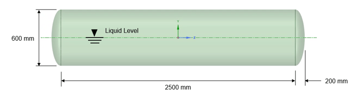 Geometry. The model consists of a horizontal cylindrical tank with ellipsoidal end-caps. The complete set of dimensions is shown in the figure below. The motion was defined in the positive Z-axis.