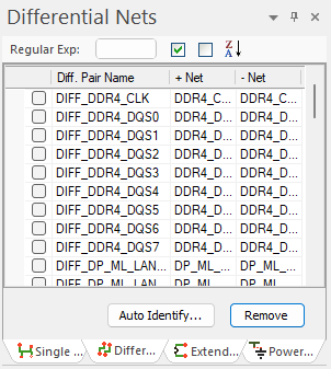 Open the Differential Pair panel and use Auto Identify to detect all differential signals.