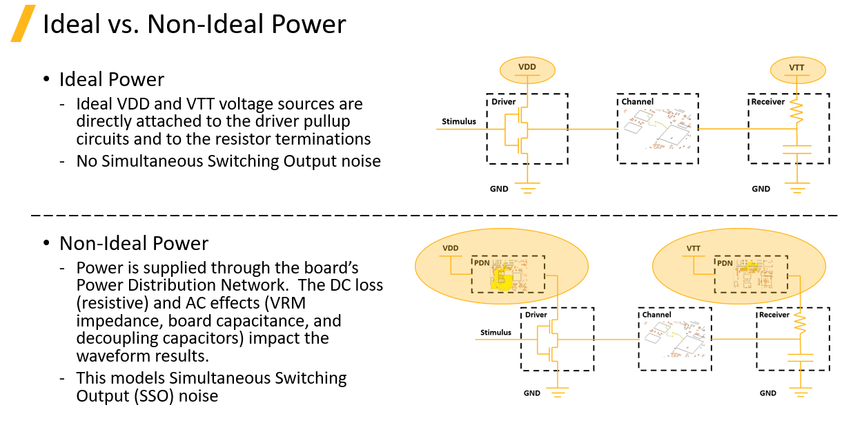 Use the SSS (Simplified Switching Source) model if IBIS models are not available and the goal is to evaluate general interconnect behavior or S-parameter response.