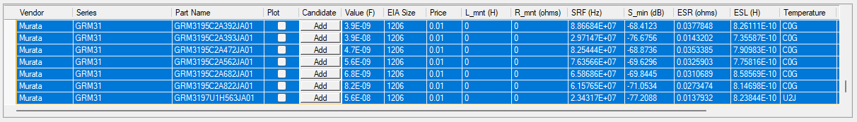 Select the final list of possible capacitor candidates, then click Assign Selected Candidates to move them to the list at the bottom-left corner.
