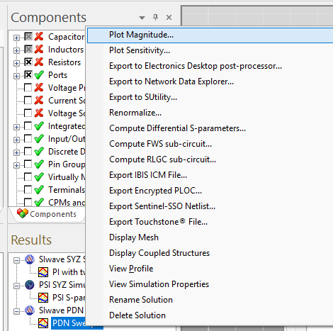 This IC Die Network tool is used when no die model (SCM/DCM from RedHawk) is available, but the designer still wants to account for die-level effects in the PDN analysis. In this blog we will not use this capability, but it is important for the user to be aware that it does exist in SIwave.