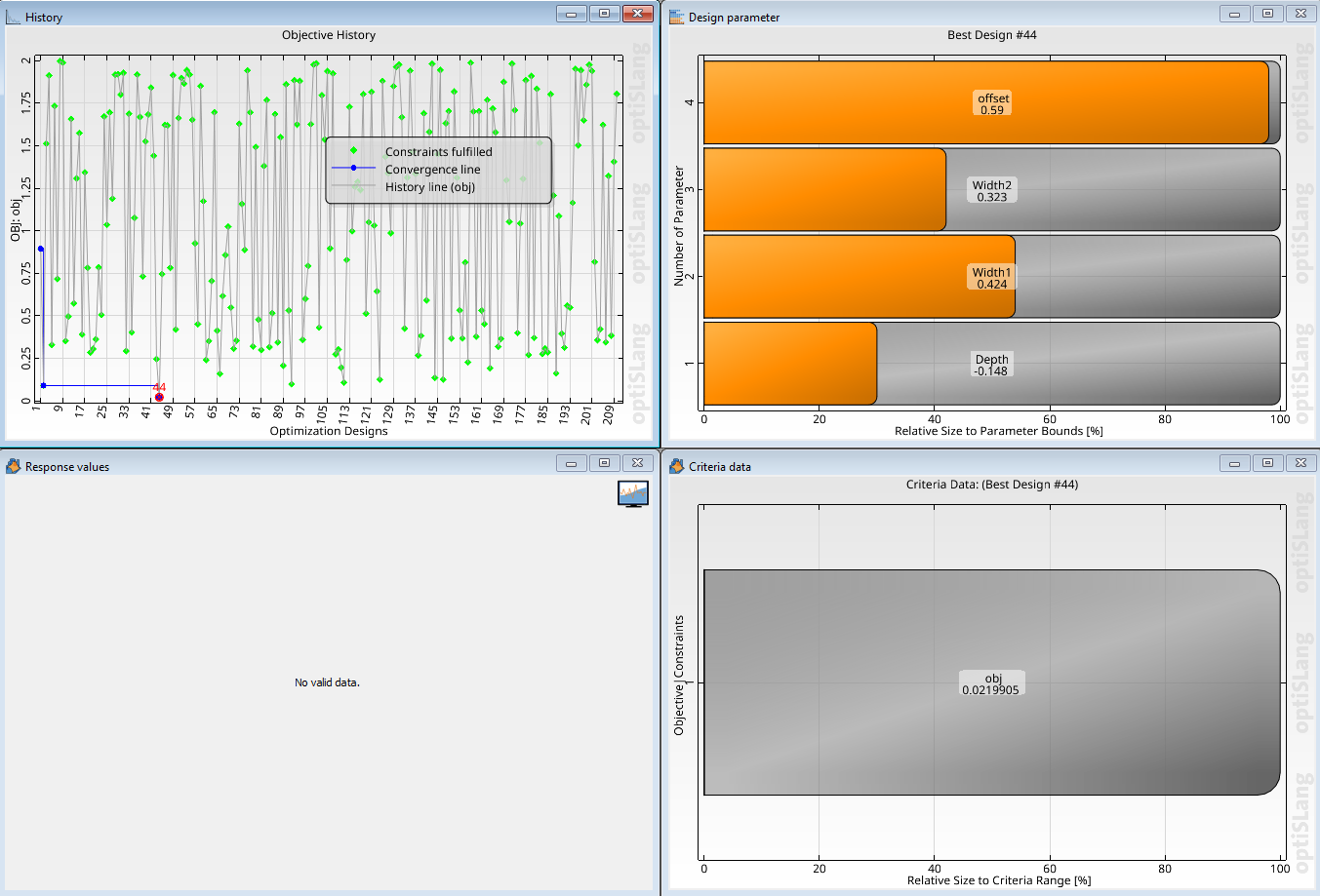 Inside OptiSLang, launch the optimization run using Stochos (PI-BO).