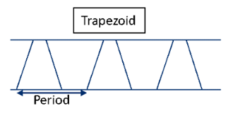 - Smaller than 0.5: base width is less than half the period, trapezoid has narrower base, steeper sides.